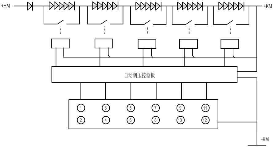 調(diào)節(jié)控制母線電壓,以向負(fù)載提供合適的直流電壓。通常采用降壓硅鏈串接于合閘母線和控制母線之間進(jìn)行調(diào)壓,允許范圍2.5%Ue??勺詣?dòng)或手動(dòng)調(diào)節(jié)。