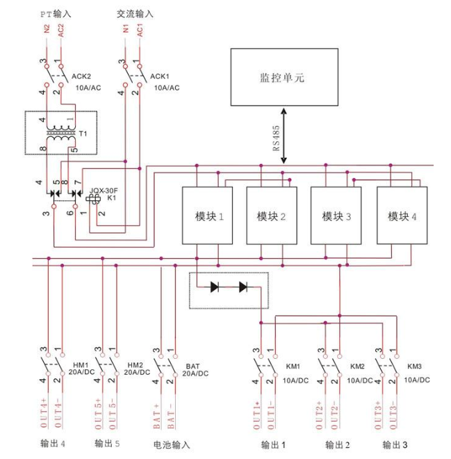 將控制電壓和合閘電壓分配給各負(fù)載支路,可實(shí)現(xiàn)多種母線的接線方式,并具有配電監(jiān)控、直流絕緣監(jiān)測(cè)、開(kāi)關(guān)量監(jiān)測(cè)等。