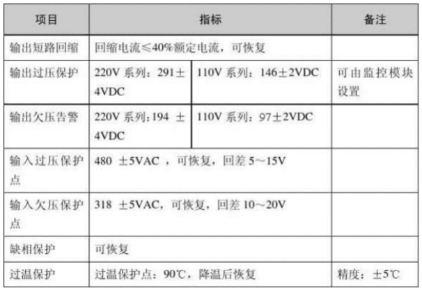 表2-1-1充電模塊保護(hù)特性表