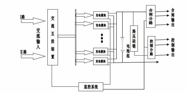 交流配電模塊從低壓配電柜處接入市電,運(yùn)用雙電源自動(dòng)切換開關(guān)結(jié)束主、備用電源之間的切換后向充電模塊供應(yīng)交流電。播送傳媒供配電體系直流屏中的充電模塊一般由多個(gè)充電模塊并聯(lián)組成,經(jīng)過(guò)降壓、整流,將220V市電轉(zhuǎn)化成體系預(yù)設(shè)幅值的直流電壓,詳細(xì)幅值可根據(jù)供配電體系特征靈敏挑選。