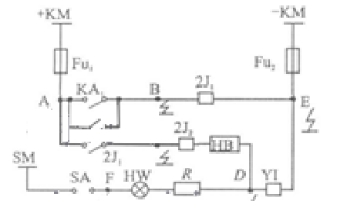 如圖1所示,當(dāng)圖中的A點(diǎn)和B點(diǎn)一同接地,相當(dāng)于A、B兩點(diǎn)通過大地相連接起來,中心繼電器2J1動(dòng)作生成斷路器的跳閘。同理,當(dāng)圖中的A點(diǎn)和C點(diǎn)一同接地,或圖中的A點(diǎn)、D點(diǎn)一同接地均或許生成斷路器的跳閘。