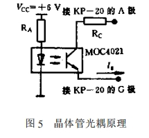 只需取下圖1所示的D1和D2兩個二極管,然后接到MOC4021光電隔絕器的二極管側(cè),另外2個端點按圖5所示接到晶閘管的控制極G和陽極A上。Rc及Rx的參數(shù)規(guī)劃如下: