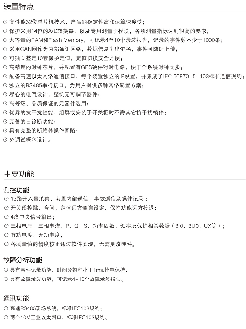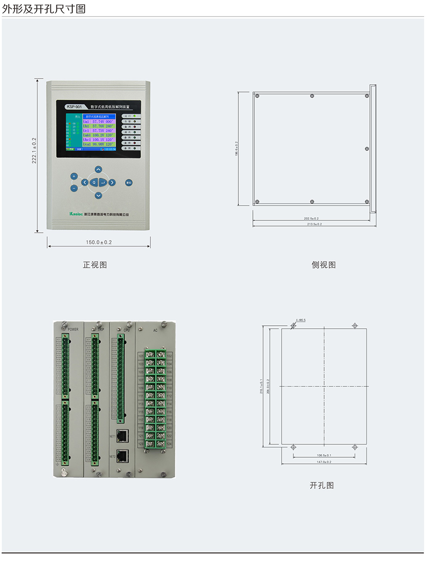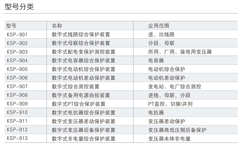 KSP-900 系列綜合保護測控裝置主要適用于 110kV 及以下電壓等級 間隔單元的保護測控,為變電站、發(fā)電廠、高低壓配電廠及廠用電 系統(tǒng)的保護與控制提供 完整的解決方案。產(chǎn)品采用完全真彩漢化的 顯示技術(shù) , 人機界面友好,使您免除査找說明書操作的煩惱。每款產(chǎn) 品均配置了基于 PC 機調(diào)試界面的接口,結(jié)合專用分析調(diào)試軟件包 , 大大改善了現(xiàn)場調(diào)試手段。裝置可以集中組屏安裝,也可以分散在 開關(guān)柜就地安裝。